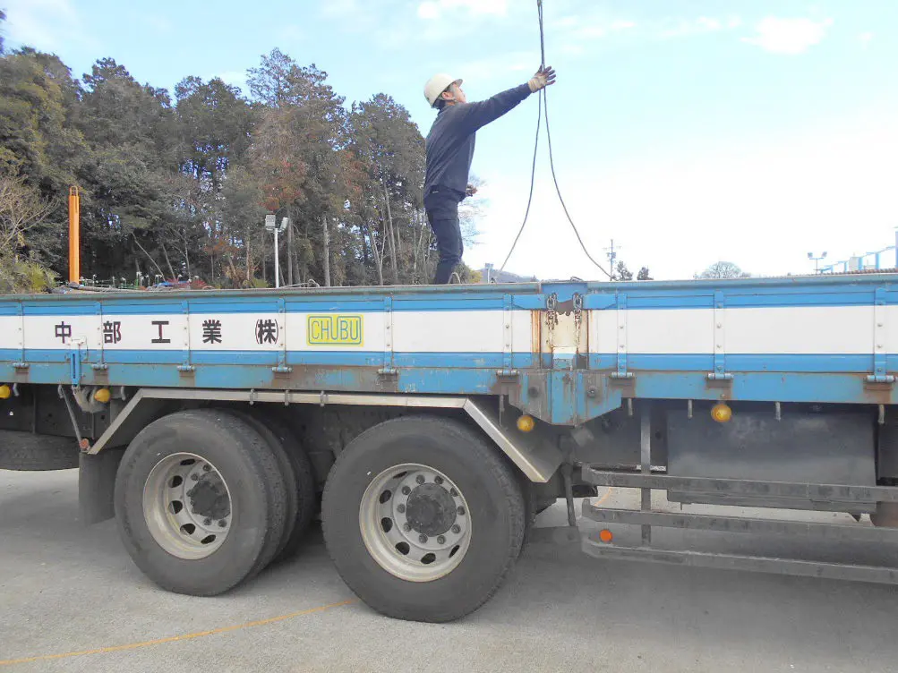 積み込む際には積み荷の安定性、積載量も考慮しながら行います。 現場に届いた鉄筋は、崩れ落ちて曲がったりしないよう安全な場所で保管します。