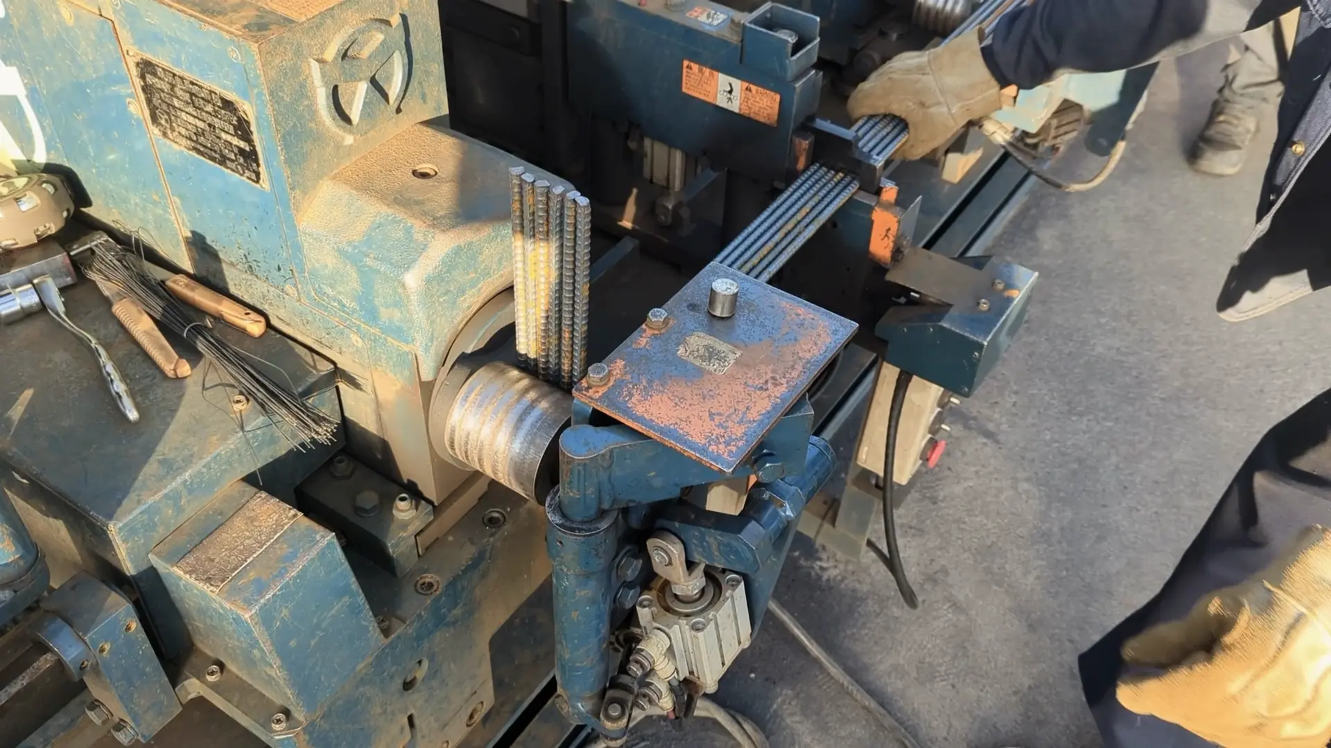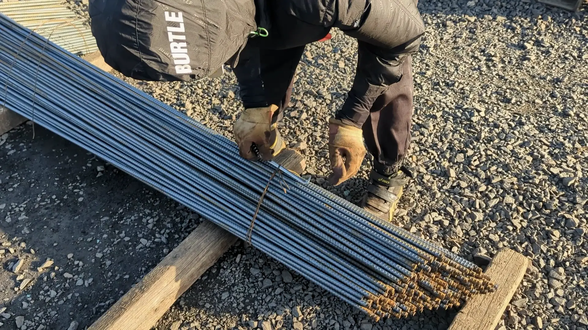 ハッカーという道具を使って、コンクリートを流し込んだ時に鉄筋がずれてしまうことがないように、結束線と呼ばれる鉄線で鉄筋と鉄筋を固定します。